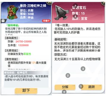 如果了解新角色的人都知道新角色的话,他没有爆发伤害,他是非常平稳的,用持续输出的buff。将敌方给弄死。所以我在阵容上是选择了很多搭配。我开始在选择的时候发现这个角色的话是暗属性,所以我用了暗套加两千的暗属性伤害到第四关之前我还觉得还行,但是到了第四章最后一关时,你会发现伤害完全不足。所以我不断的调整调整,后来我发现利用源套的话会得到更高的属性。角色的话,他会把所有的属性不管是任何属性的话都可以利用起来,所以这个套装的话对他的提升非常大,我也是测试到后面才发现伤害确实高了一大截。大招开启后可以得到700到5000的属性伤害,所以这个是非常逆天的。但是这个装备也有很大的一个弊端。就是开完大招以后,他会把你当前的能量值全部清空。那么这个时候你需要一颗回蓝宝石来开启石化或者冰箱技能。最大化这个套装的话我是带了水神之星宝石。