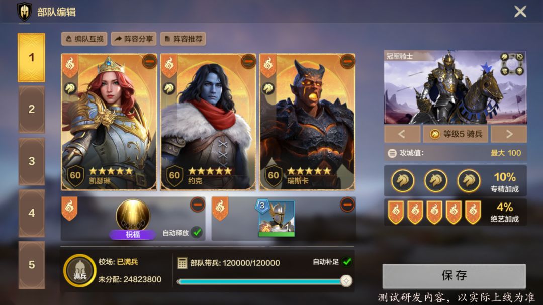 构建难度:焰系骑兵队伍的终极阵容,获取难度较高,但是可以用其他英雄作为过渡替代。