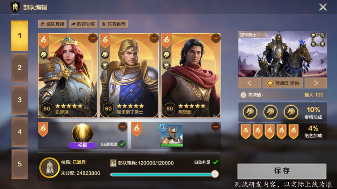 该效果为凯瑟琳所属队伍带来了极高的续航能力,作为一支骑兵队伍,通常需要突击敌阵,偷袭后排输出队伍,但也很容易被敌方集火秒杀,该效果可以在击溃敌方薄弱队伍后,立即回复大量兵力,保证连续作战能力。