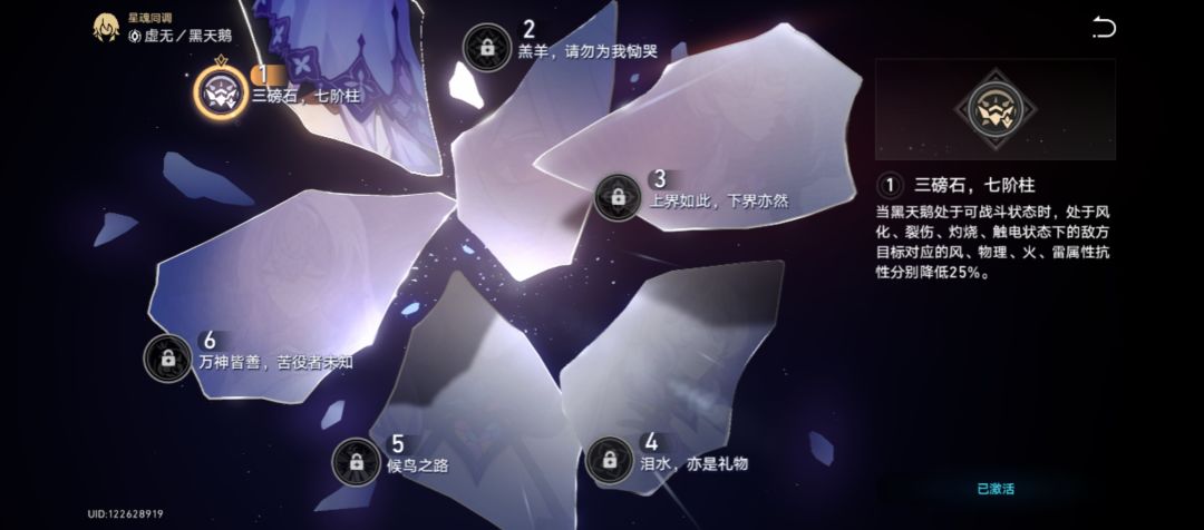 如果带决心光锥的话她自己提供的debuff数达到了恐怖的5个。但我觉得就没必要了。带上输出光锥正好弥补了真理对群乏力的不足。并且在副c的情况下释放战技的频率不需要拉满。所以也不是很缺战技点。