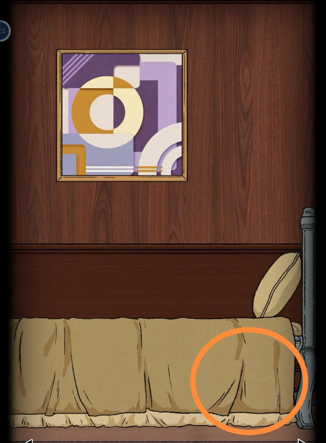 用餐刀把墙上的凹槽刮下来发现的密码与墙上的画图案相符(选中相应图块,用香水喷显现数字)得到密码47513,打开右侧第二个抽屉得到镜片,用钥匙A开红色圈抽屉得到白纸,放在紫光灯下显现。