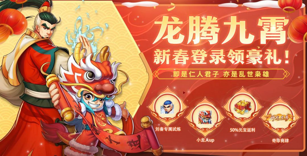 辞旧迎新,万物更新,气象万变,人们在喜悦之余庆祝,祝丰收,庆余年,贺新年。在这里攻略组先给各位主公送上诚挚的祝福,祝您和您的家人在新的一年吉祥如意,心想事成,平安喜乐!官方在新春佳节到来之际,也为各位主公准备了一系列的热门活动,下面攻略组先给各位主公带来福龙贺岁欢庆活动第一期内容的分析,请各位主公提前查阅。