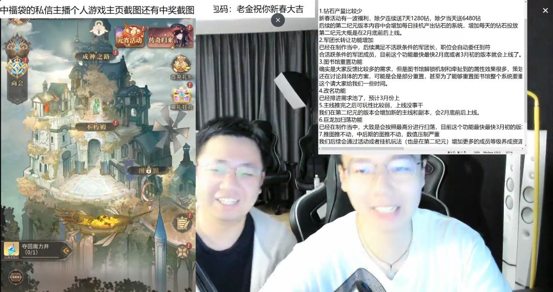 新春主题直播回顾,玩家关心问题进度大披露!