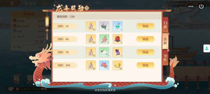 玩了许多天的游戏,本以为每天只用登船便可以不再踏入龙舟页面,直到后来的一次偶然发现才明白,每天的18:30还要进行比赛,具体见图(附)