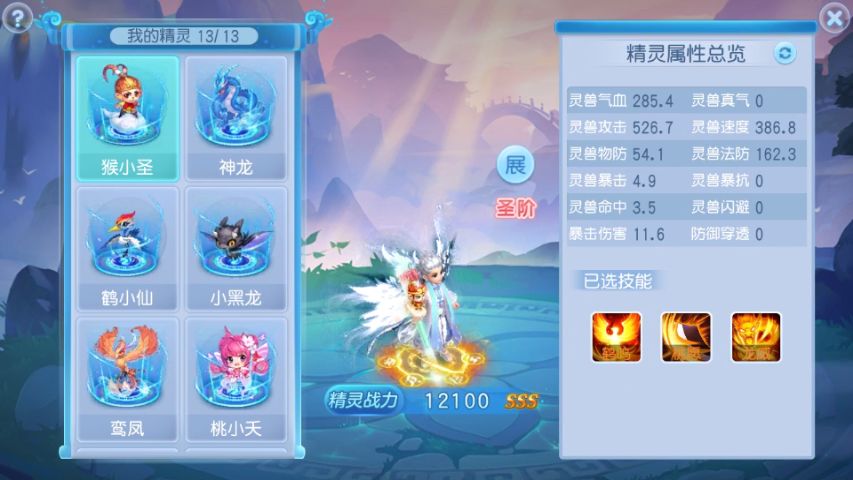 目前在桃花源记共计有13只精灵,分为四个等阶:凡,灵,仙,圣!那么接下来我们把各个精灵携带的技能做一个详细的介绍。