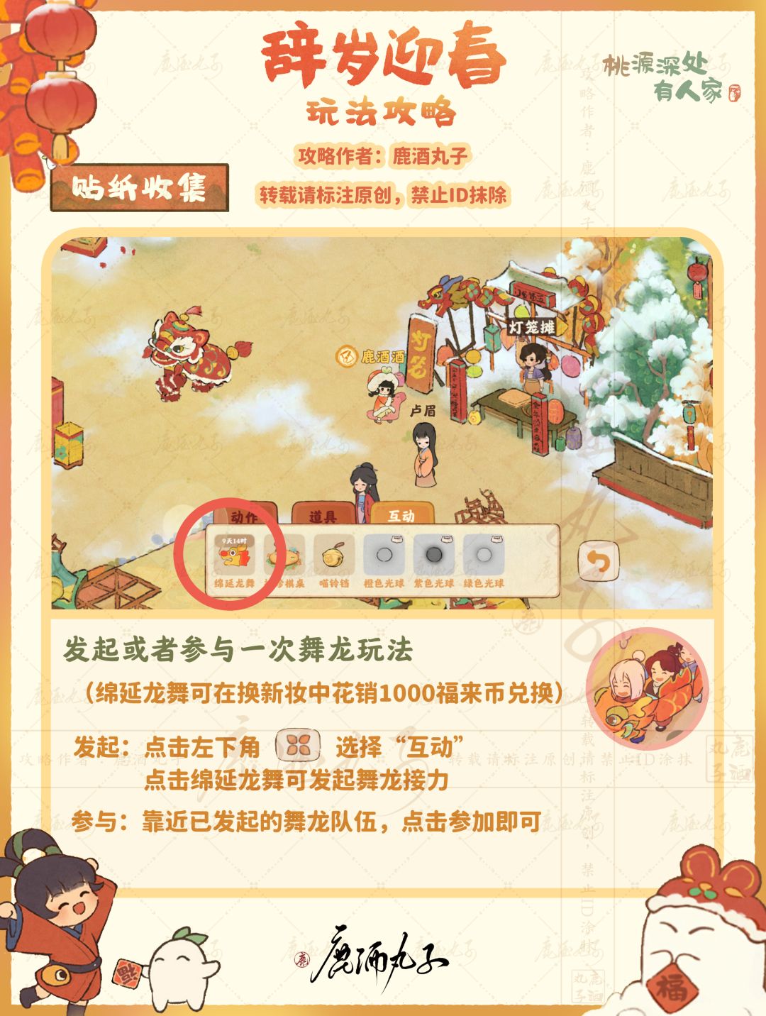 ⭐绵延龙舞参与也可完成贴纸收集,可不在换新妆中购买(绵延龙舞需花费1000福来币兑换)
