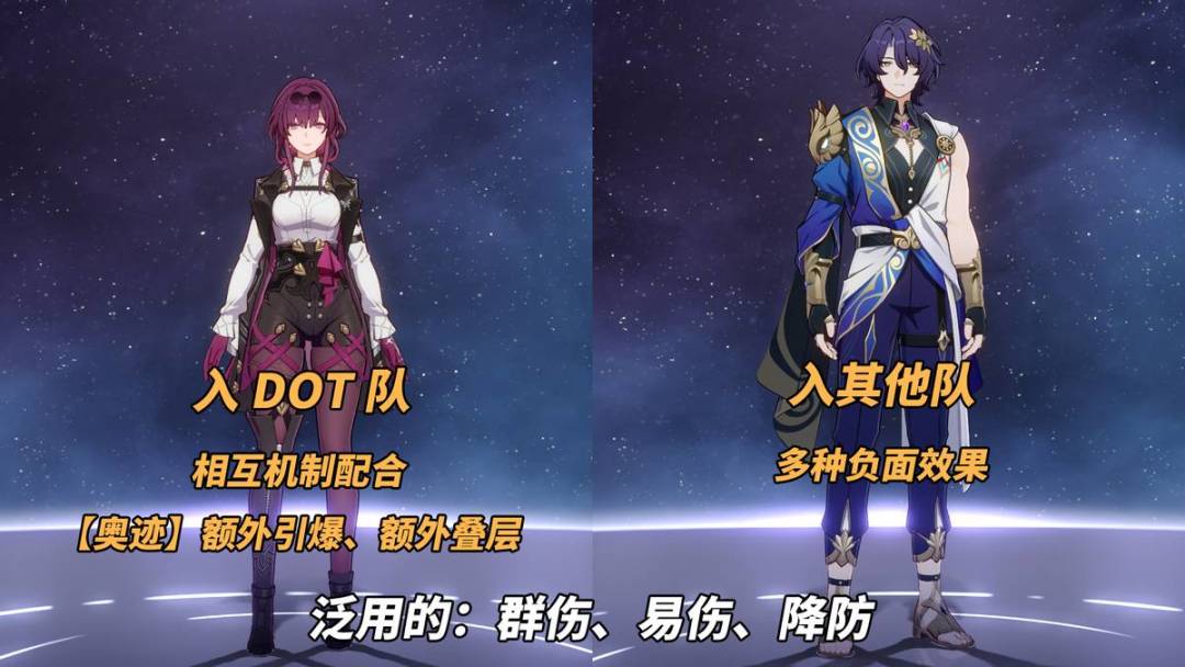 是一位比较灵活的虚无角色。即能配合卡芙卡打出额外【奥迹】伤害,优化对新目标输出的能力;也可搭配入队任意队伍,当做1位增益型对群副C使用,例如需要负面助力且对群较弱的真理医生。