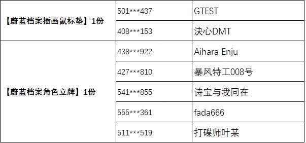 感谢各位老师对《蔚蓝档案》的支持与关注!恭喜以下幸运老师获得本次活动奖励!