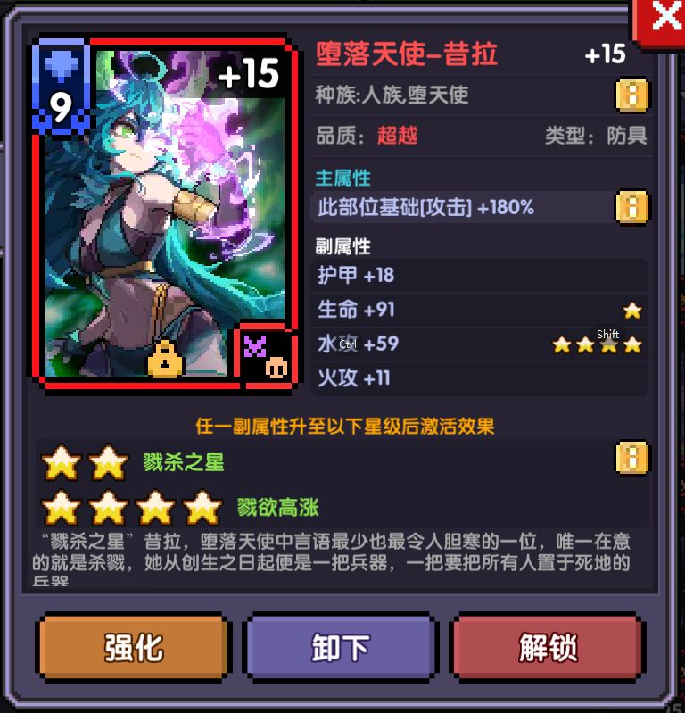 羁绊属性:人族(+300甲穿)堕天使(+100元穿)元素(+20%全伤)魔神(+4%首伤)