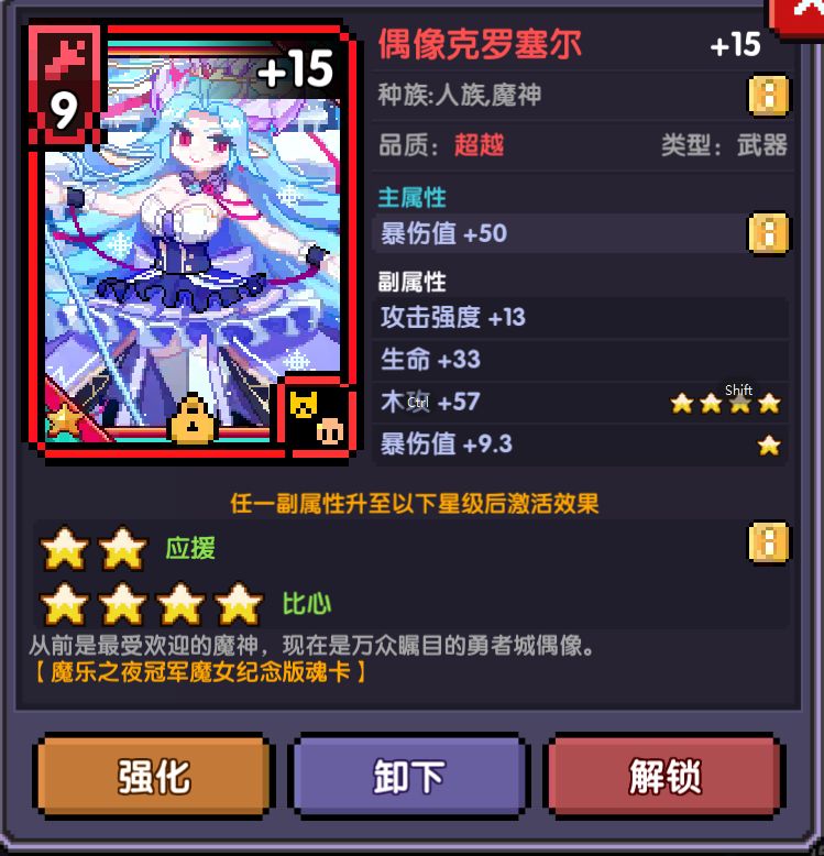2.偶像克罗塞尔 主属性:暴击伤害(获取途径:商城-魂卡商店金币兑换等)
