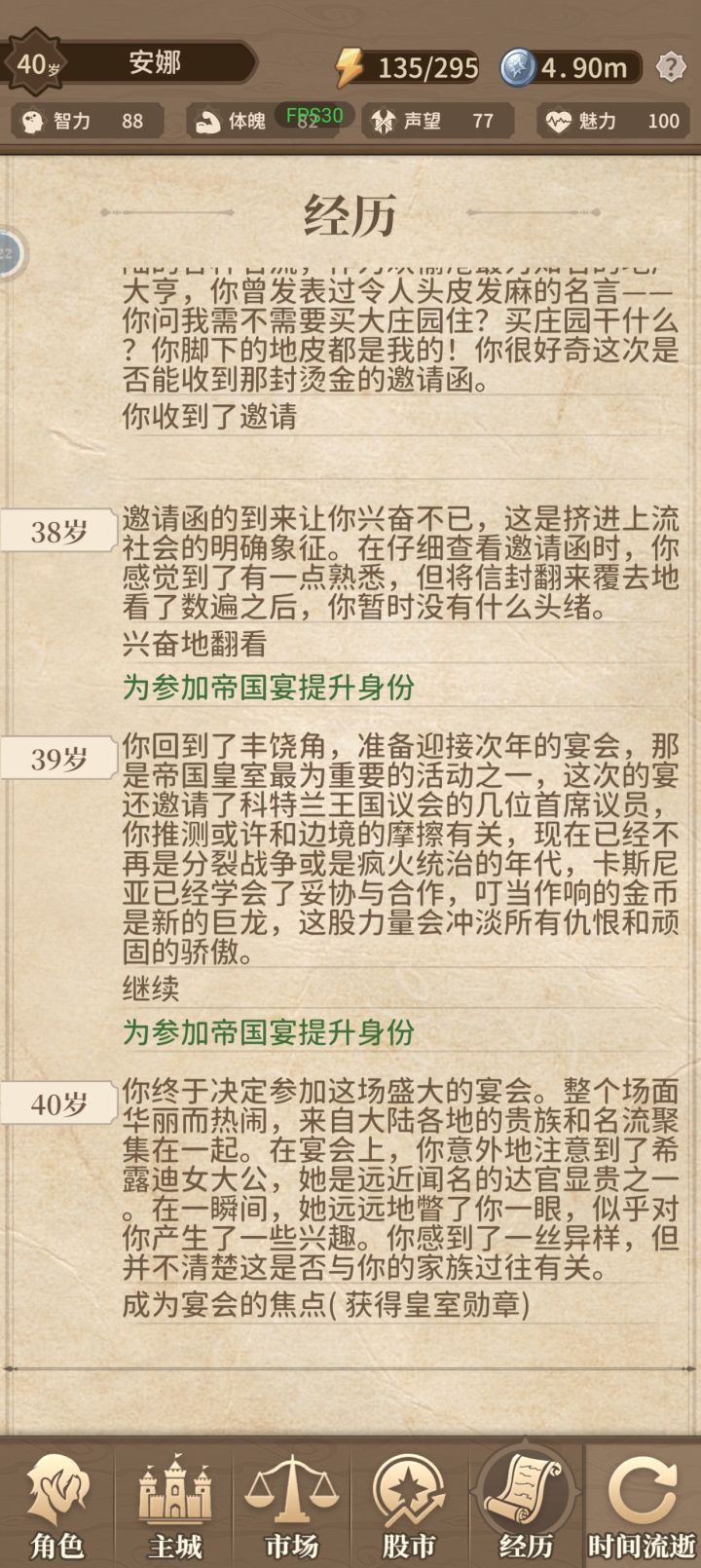 每次到 35-40 岁,剧情提示需要我拥有继承者之戒或者皇室勋章,不然就会往敌不过阴谋、失败告终,多少或产业股票都不行,