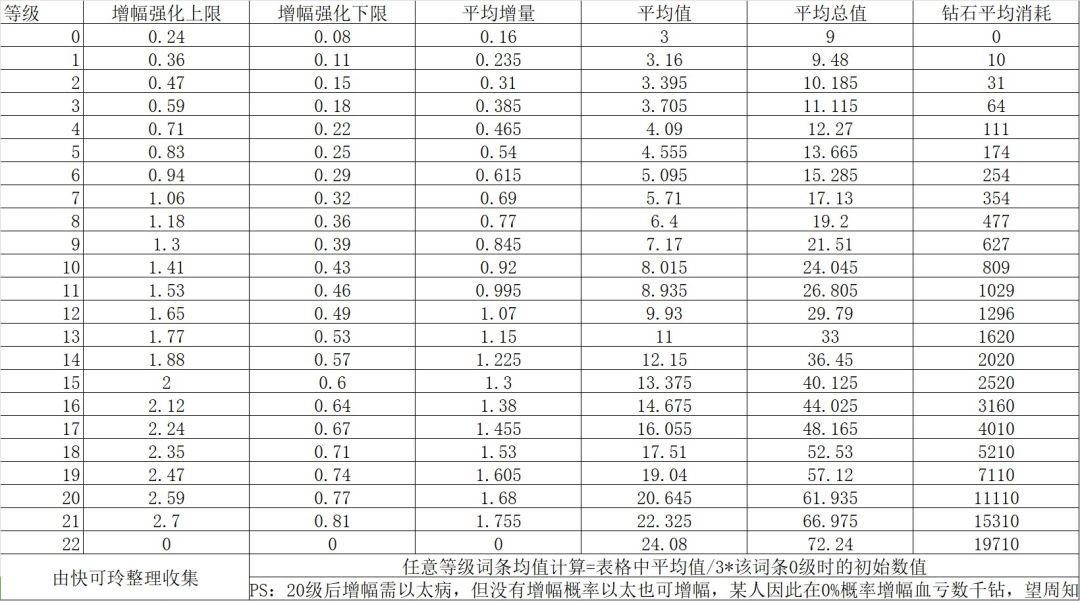 堕落宝珠各等级数值及钻石消耗期望