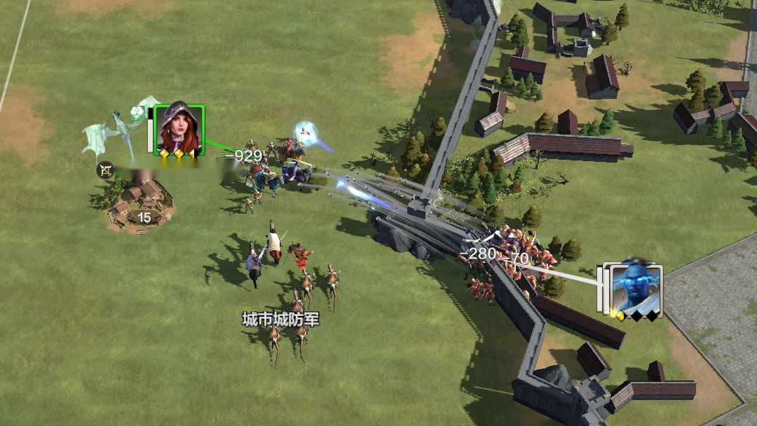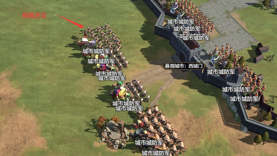 城防军部队具有一定的仇恨距离,因此我们可以选择从侧翼发起攻击,这样只需要面对少数城防部队,将其逐个击破。