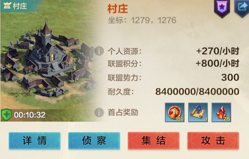 奖励道具:占领中立城市可以提升联盟势力值、个人资源和联盟积分产出,首次占领全体联盟成员还会获得龙币、迁城道具和水晶资源。