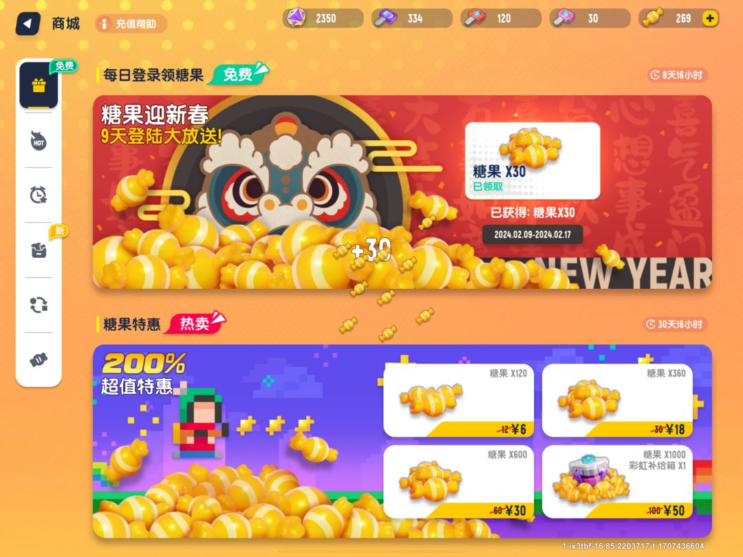 每天登陆领到30糖果(一共可以领导270糖果)