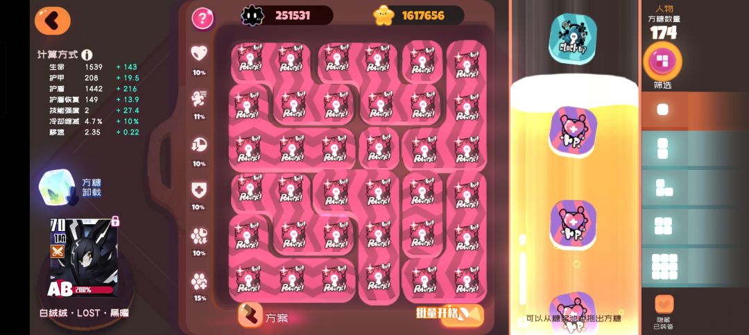 宠物:打call,鸡块(最好六星,其他也可以),土焖鸡(必六星),灯点儿(必六星)【方糖:全血量,血量方块不足的话给护盾】