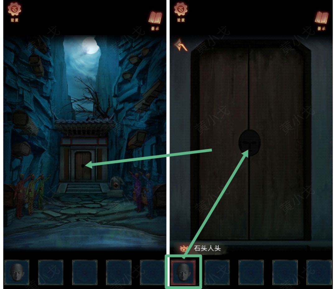27.点击门,把【石头人头】放入凹槽处,打开门