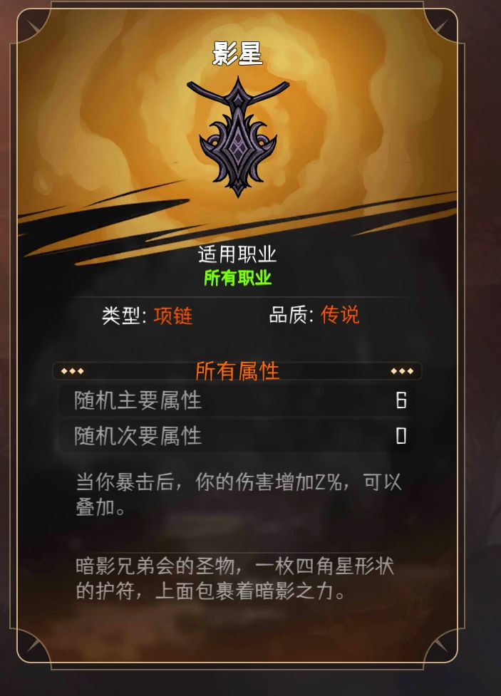 暗影刺客这个转职可以说是和暴击率息息相关,幽奈套装配合暗影圣物可以提供朴实无华的大量增伤,所以打算玩刺客的话,在解锁帝国和诺斯委托以后优先去刷暗影兄弟会的任务获取声望,解锁军械库(幽奈套装)和圣物,军械库最好能打大漩涡用产出火焰之石抽取,直接是五阶装备,势力币给的只有三阶,主要用来解锁圣物的,后期倒是可以抽项链。