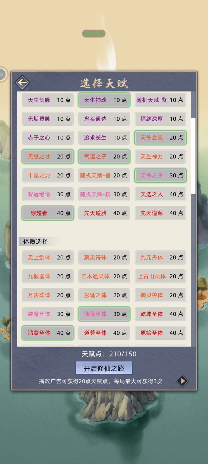 登仙台(先天气运):让一个弟子进入,在两旬时暂停,换一个凡人弟子进入,开始,凡人期获得的气运天赋为先天气运。