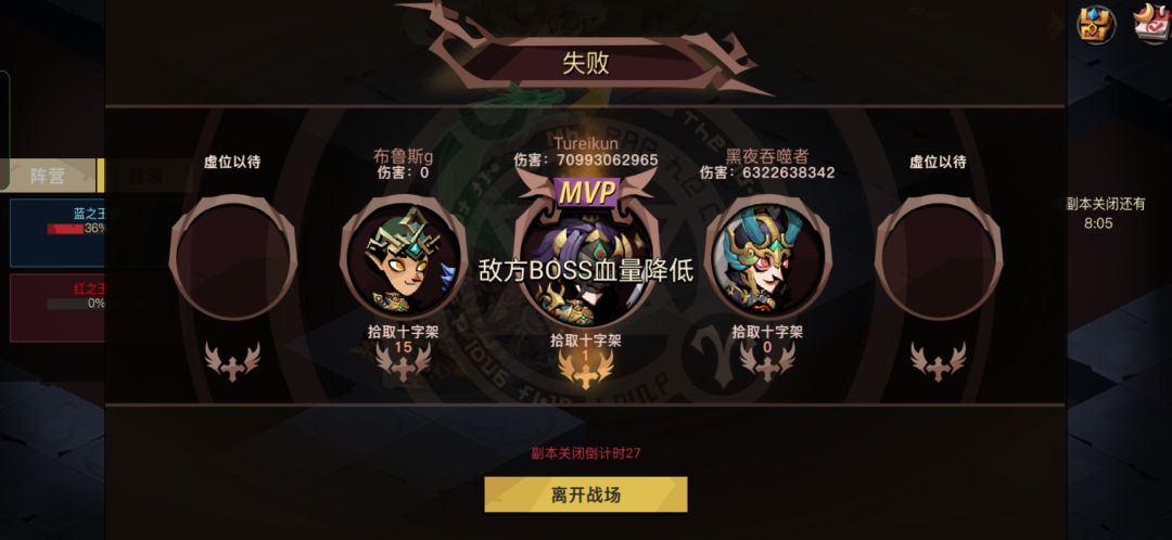 这活动是真的恶心啊,你能不能赢真的的是纯看运气。今天打了一个多小时,十多把才赢了三把 ,真的是恶心人 。排到练度高和练度低的队友打年兽的速度几乎是翻倍 ,上面前两个图就是排到了高练度的队友 ,开局我十字架前面抢的都是没啥用的,不是净化就是削弱什么的,结果一看伤害,两个大佬打了伤害直接碾压红队了