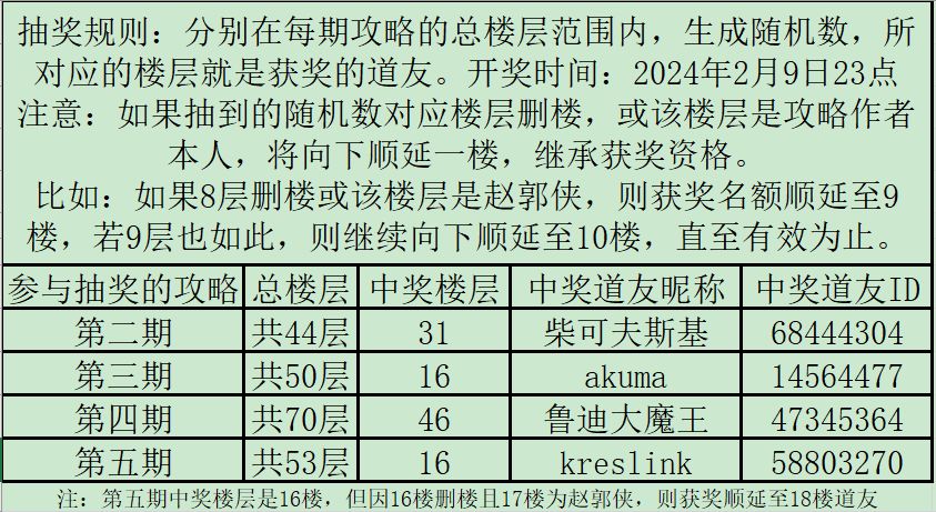 开奖啦开奖啦,万分吾行之攻略系列抽奖活动在除夕之夜开奖啦,抽奖规则和获奖信息请参见下图: