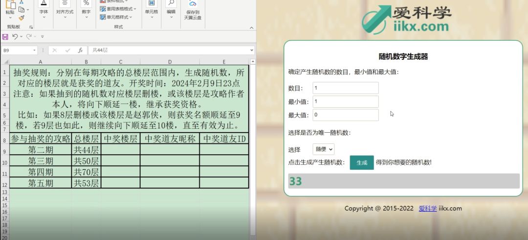 同时录制了抽奖全过程的视频,抽奖视频为: