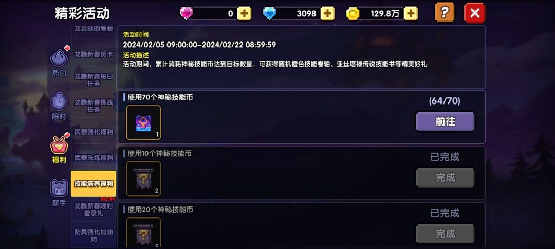 目前的这个活动 70抽技能币就能领两个新火技能自选包
