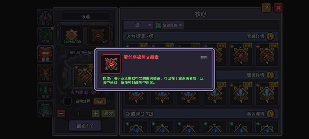 其他稍微刷刷能用就行 胸部和鞋子的火符文能量要多刷刷 最好能出紫色橙色提升很大