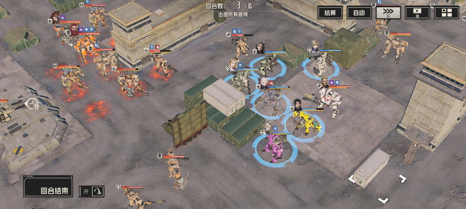 西尔维亚飞行背包,芙丽达移动背包。艾琳和肖尼打完了(肖尼可以放两次电磁炮瞄准头部),西尔维亚飞过去杀会隐形的,然后击杀另外俩小的走位,最后一枪盛放BOSS继续走位。需要凹,左边的小的不能炸死是给西尔维亚搭桥的,第二回合西尔维亚击杀BOSS,然后打一枪最近的结构体,打不死就可以,是给肖尼搭桥走位并回AP的(肖尼穿的日努俩蓝导弹,用导弹打结构体),肖尼到位以后下回合7AP可以放三次电磁炮打头(俩BOSS面前直线俩怪正好分开死,补AP)。最后杀红胡子要凹芙丽达的负载强袭(周围有俩小的,换着打凹)红胡子压到三千多血并且盾掉了就能打死。