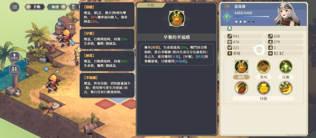 诺诺提供全队再生,配合蔻蔻个性大招加绷带奶量,生存无忧,也可以瞬发技能给大范围敌人全体易伤3,有莉莉情况下诺诺有6格的移动力,加上瞬发幻影舞步就是不用战法能跑8格,绝对的高机动性