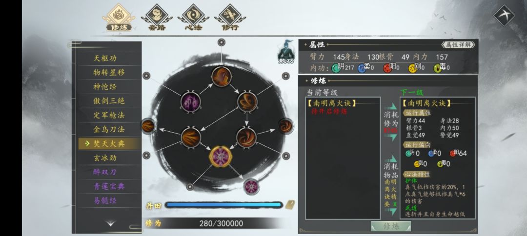 焚天火典是加入南斗教后在正邪大战之前烈行云给你传的武功,带有武道效果,非常不错。