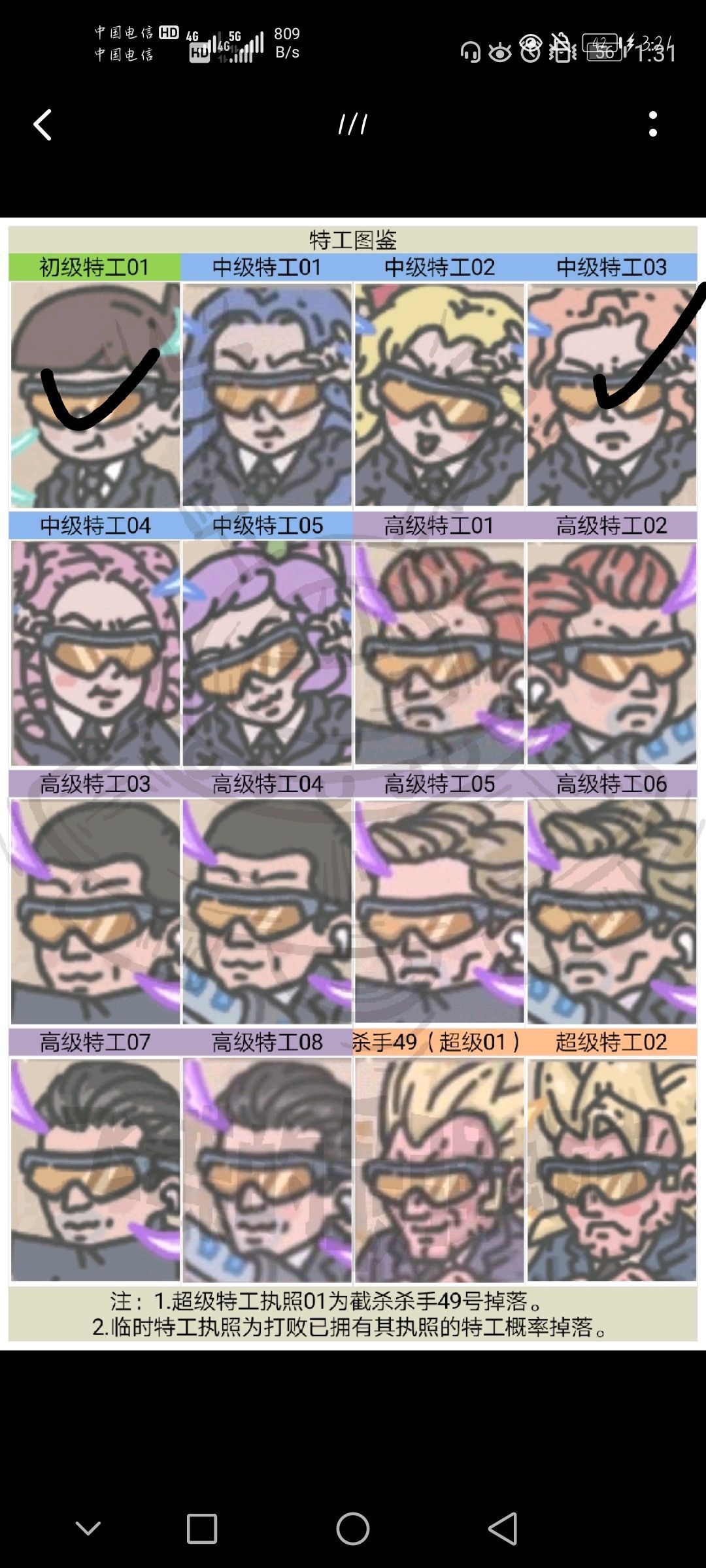 嫌疑犯等级如下图跟同颜色特工一致