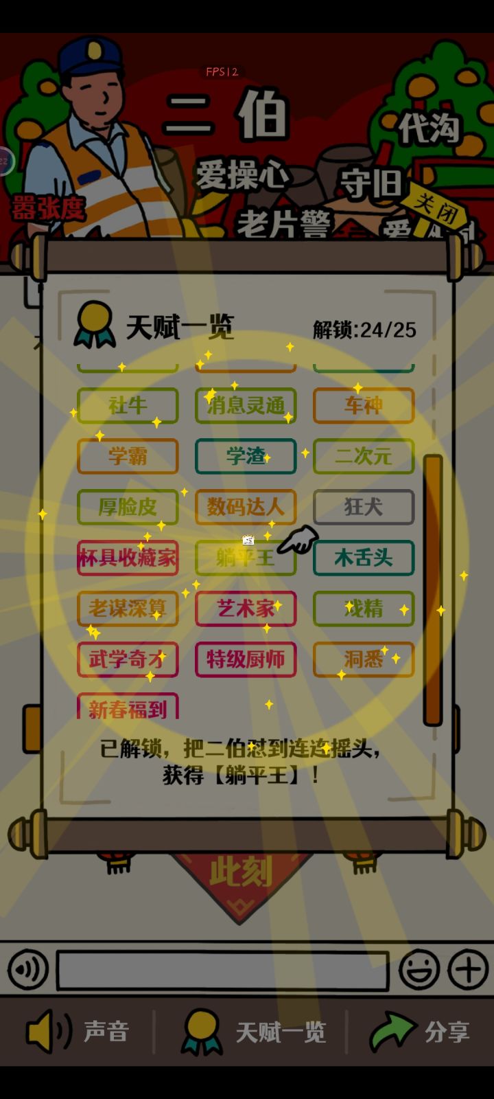 快速做成就,需要看广告,跳选项把满意度加满或怒气清零