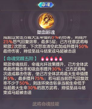 命魂武将:红豆张星彩3命启用(5命最佳)、红豆马超5命启用