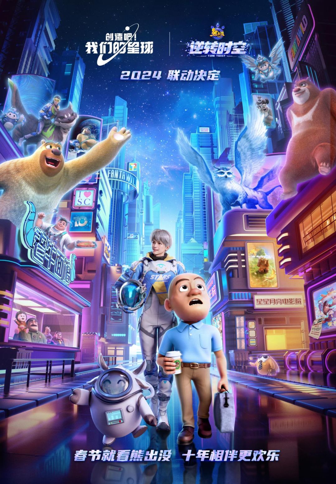 奔赴十年之约,《熊出没》系列第十部大电影《熊出没·逆转时空》如期在全国各大院线火爆上映!新旧时间线在这里交汇,相逢的人会再相逢,并且熊出没的经典场景和经典角色也在影片中强势回归,让大家重逢童年,告别过去的同时迎接和展望未来!《创造吧!我们的星球》惊喜“牵手”《熊出没》展开联动,不仅仅是基于二者的契合度,也是对国产原创动漫IP的支持。作为熊粉,谁能拒绝得了与强熊三人组,与熊出没经典角色更多相处机会呢?