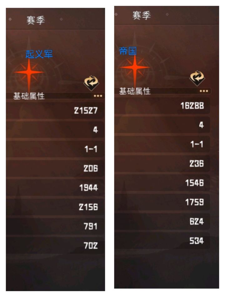 同装备下帝国圣物和起义军圣物数值对比