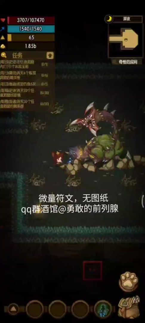 c.开局释放宠物2技能,且每隔至少18秒释放一次,有多余的技能点可以释放3技能(在开打之前脱装备再穿装备可以将回血量控制在1000左右,不影响残血的状态,效果演示见群文件“鼠公主使用技巧”)。