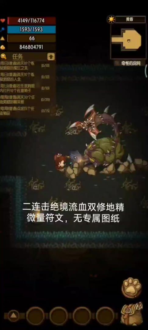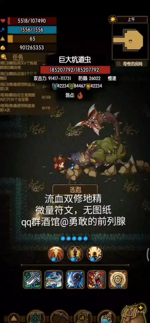 点评:非常稳定、安逸且输出较高的组合,适合绝大部分双修地精玩家首选。面对遗迹7的大虫时,由于百魔免的存在,释放护盾的次数变得更加少,利用舍身打输出的次数更多,综合下来输出能力与经典双修地精不相上下。