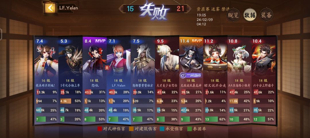 这里拿一下算是国内比较顶级的ad,LF-Yelan的一把排位,看一下一个正常的ad应该做到的数据是什么。
