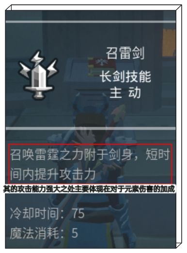 长剑有且只有一个辅助性进攻技能「召雷剑」作为其的一大亮点,它能够完美适配所有武器以及职业而其中当以弓箭手为代表,前面也花了很多篇幅去解释过元素伤害对我们的重要性。其对前期伤害嬴弱的天选者和双手来说意义重大,至于配合天选者后帅气的“雷拳”和其本身对蓝耗极低的需求,在体验过后一定能够给你带来不少惊喜,作为强攻型的辅助一定不能够错过喔。