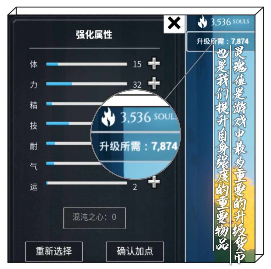 无论是哪个职业来都对攻击力有着不小的要求,毕竟技巧再强也离不看实力的堆砌总不可能和Boos比谁的血条更厚,“力”在不同的职业有着不同的体现如法师对和战士对力就有着很高的入门要求,而骑士本身基础攻击值并不高但也还看的过去,想给其加点在套装没成型前一定要根据气的多少而慎重分配,要是出现了气过高但攻击力低下就和用“筋膜枪”按摩没有什么区别了———频率快、很持久但没啥伤害;同样的如果力过高但气过低也就成了“虚假的一拳超人”了———伤害可观但没有持久力,往往进攻一次就要休整良久。具体分配由建档的游戏进度或是卡关Boos而定,要说攻略建议目前还真的没有什么有参考价值的建议。