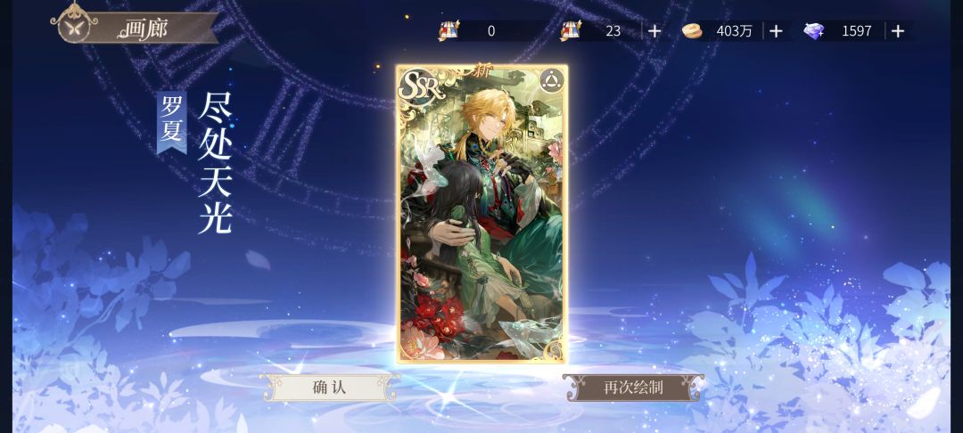 ),这次乌漆麻黑抽的很难受,出了两个叶瑄,随机自选又出一个叶瑄,直接三特了气死,继续抽抽出两常驻,自选强娶艾因,把罗夏抽出来后又强娶了司岚。这次卡真的好好看,全都好喜欢,all推痛哭流涕