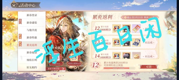 原本准备少拿几个卡,把司岚叶瑄艾因的搞到手就停手没想到还是几乎抽全了。还好这次累充非常好看而且很强,感觉高难本无敌