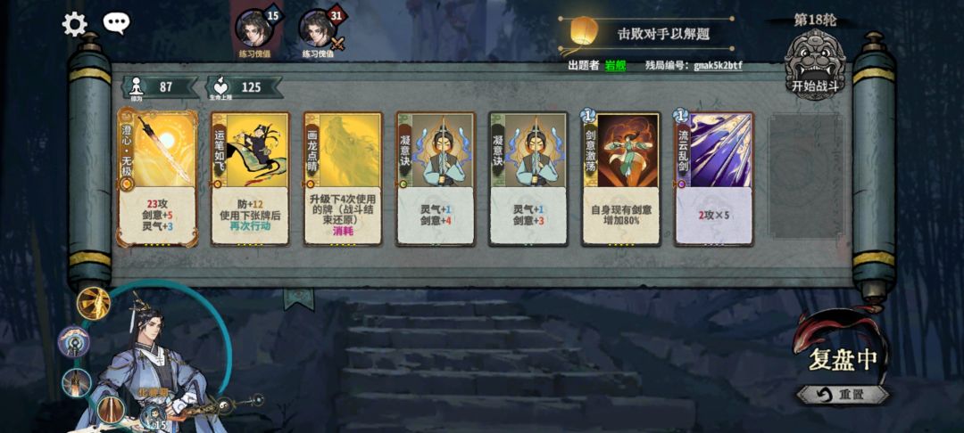 本局对方攻击成型速度快于我方,所以要在对方剑意叠加我来之前出手,舍弃了3点剑意但足以秒掉对方。