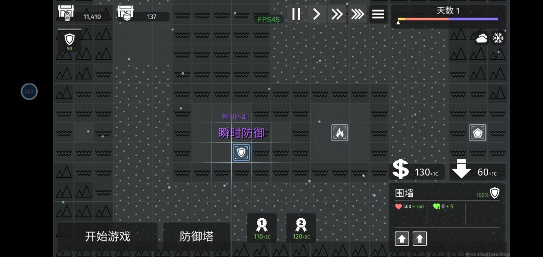 围墙在升级瞬时防御后再选择降级,就会发现比原先多出了10枚金币。在暂停后,如此升级降级,循环往复,就能得到几乎无限的金币(前提是你有这个耐心)