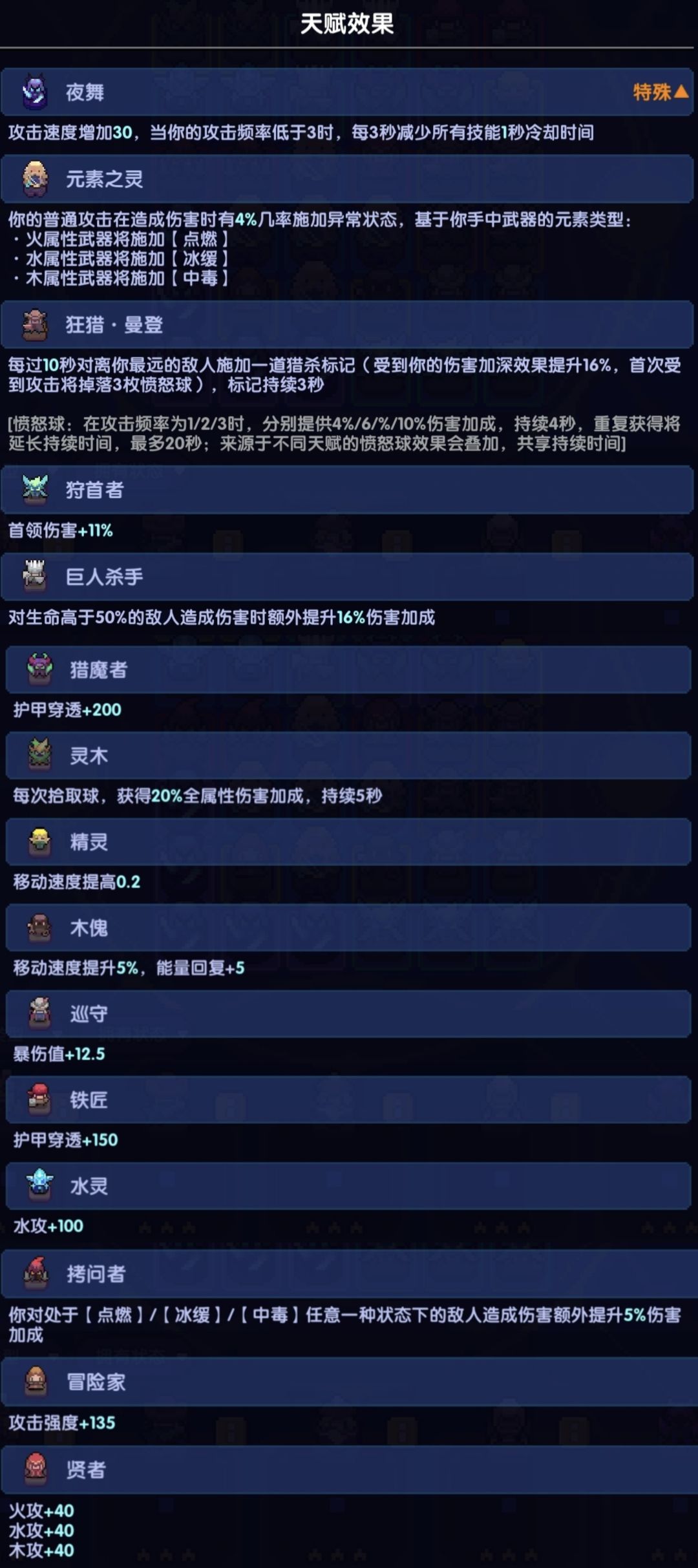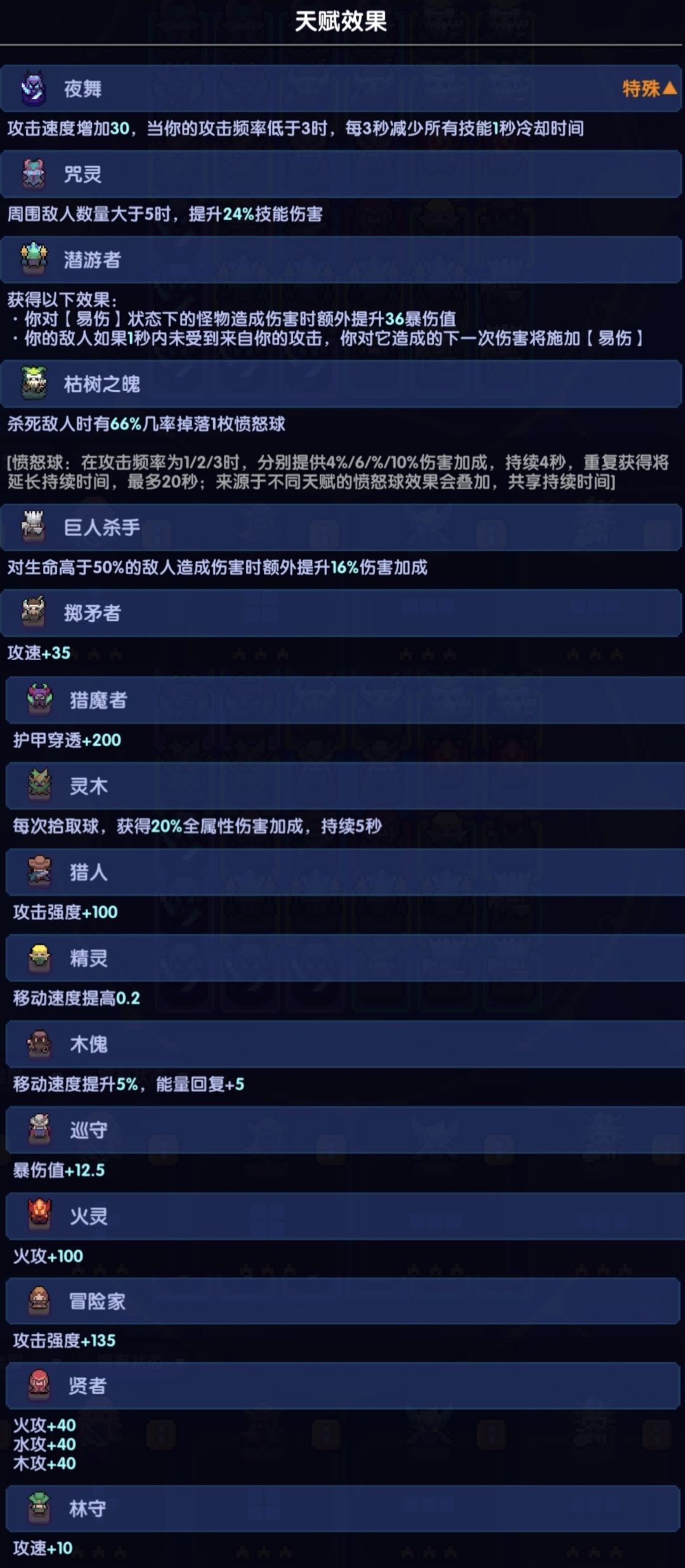 天赋:带了“精灵”和“木傀”,可以增加移速。如果还是觉得走得慢,可以把“冒险家”和“猎人”换成“斥候”(+0.1移速)