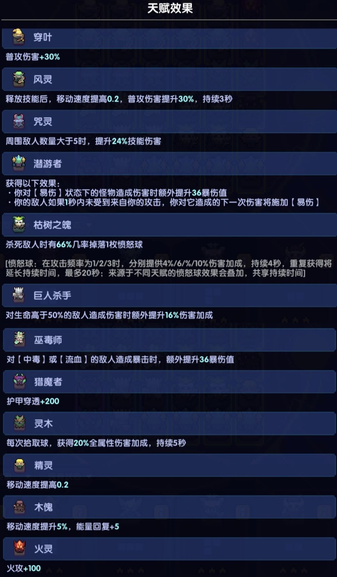 天赋:“精灵”和“木傀”是加移速和回蓝的,不要的话可以换成“巡守”(12.5爆伤)