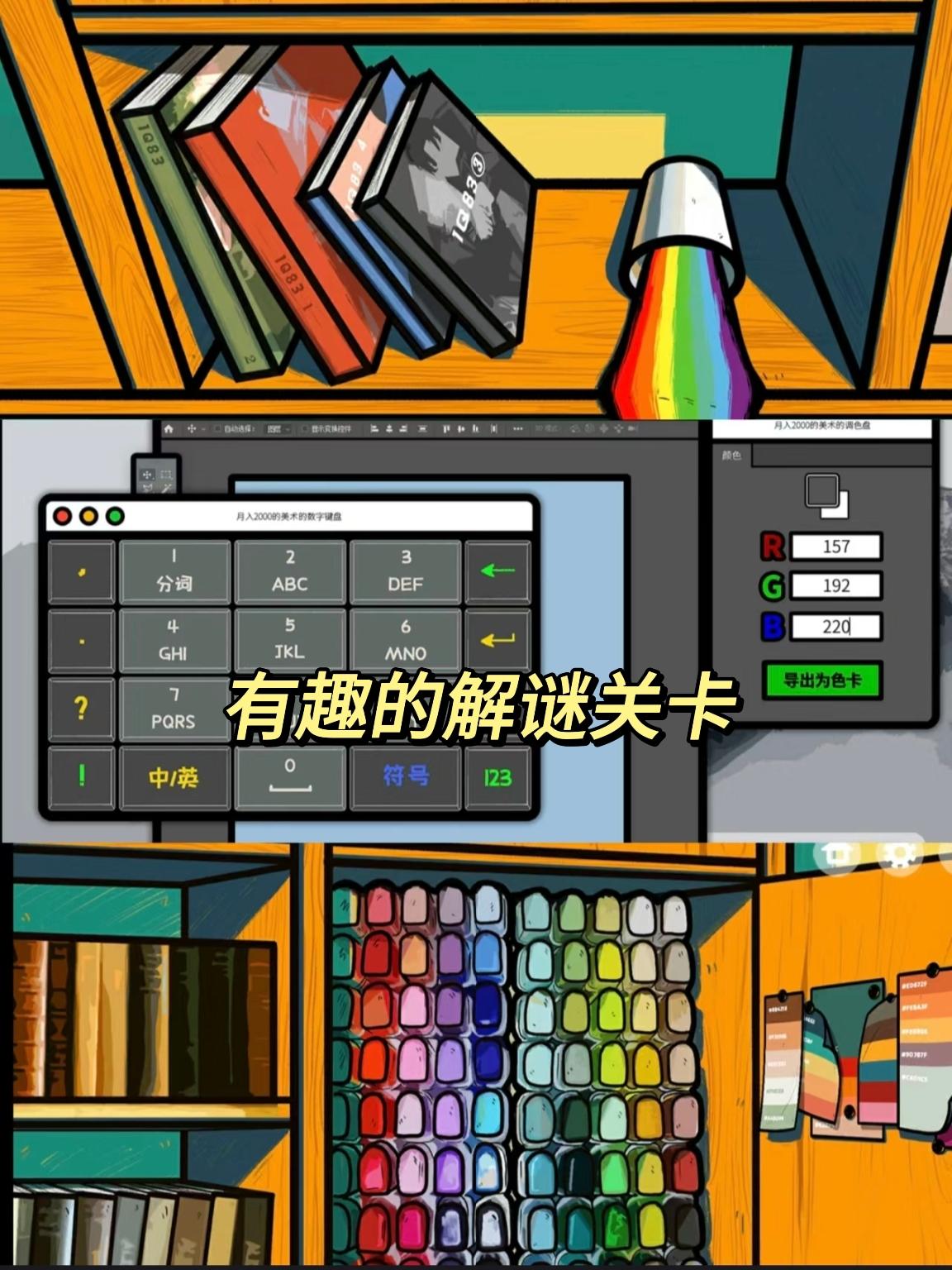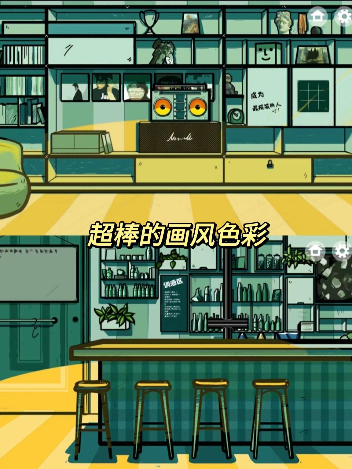 解谜的设计注重逻辑(体验感up,与剧情画面的融合,很喜欢调酒和色卡的步聚,游戏里还很多音乐绘画书籍的彩蛋,比如1a84/活着/呐喊(还有很多不一一列举了),也有梗比如蛇(社)矗(畜)吃柠檬,最后一共有三种结局。