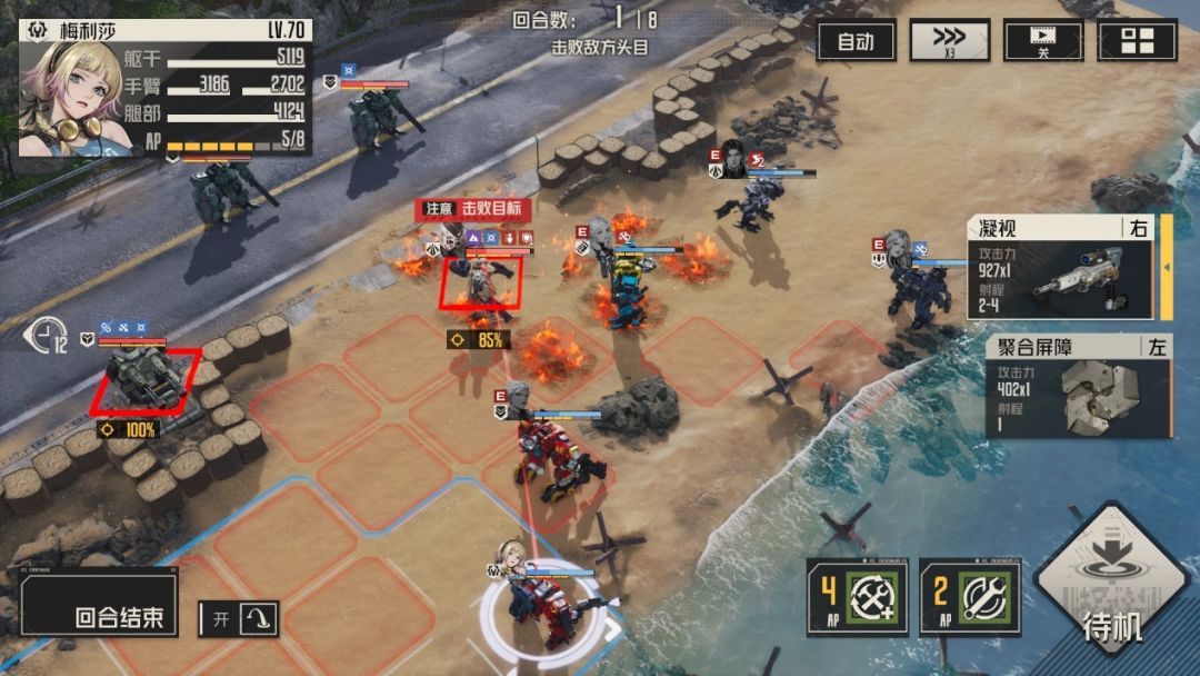 艾琳石墨弹头打boss,马库斯攻击机关炮,最好是能留给白月补刀回ap