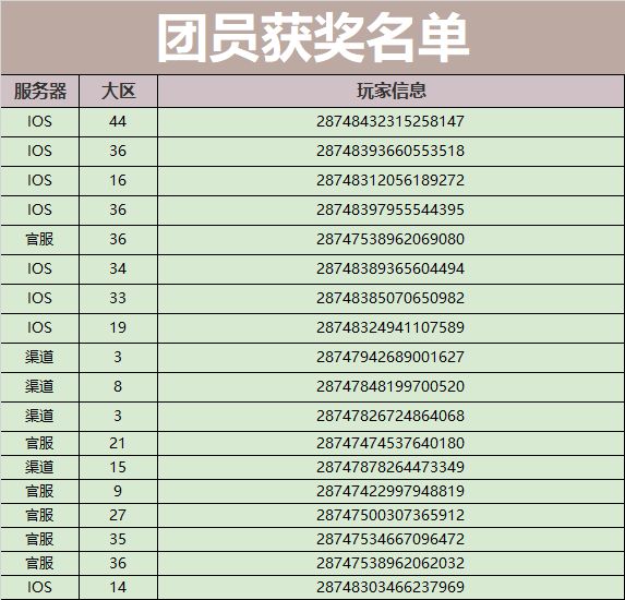 本次“军团集结,荣耀回归”活动圆满结束,奖励名单如下: